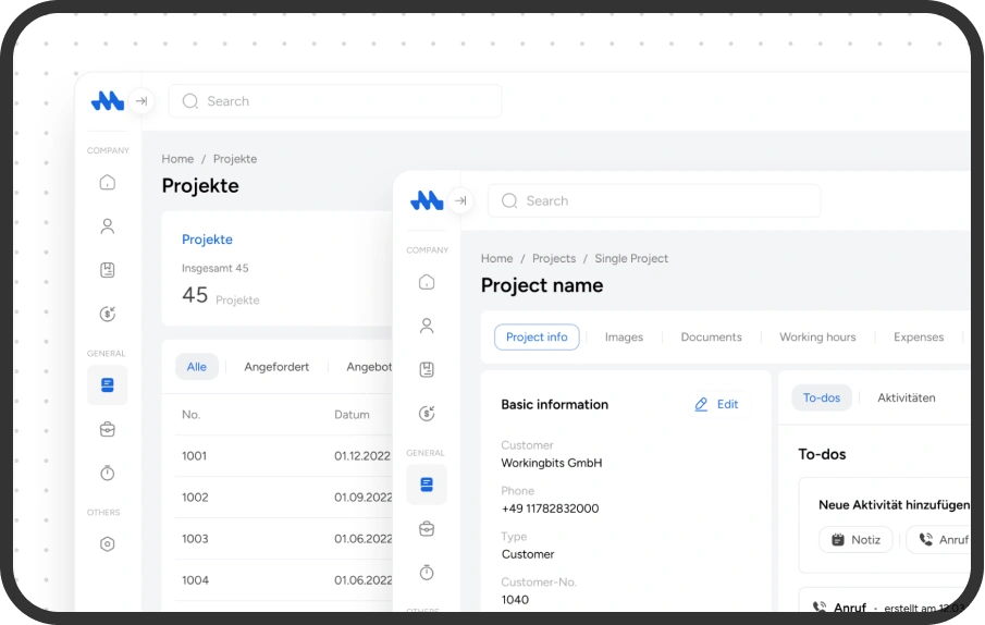 Projekte managen, Zeiten tracken, Dokumente erstellen und Zahlungen im Blick behalten – alles in einer App. Intuitiv, schnell, teamfähig.