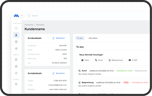 Die Mesh APP ist eine moderne CRM-Lösung für kleine und mittlere Unternehmen. Sie bündelt Kontakte, Deals, Aktivitäten sowie – bei