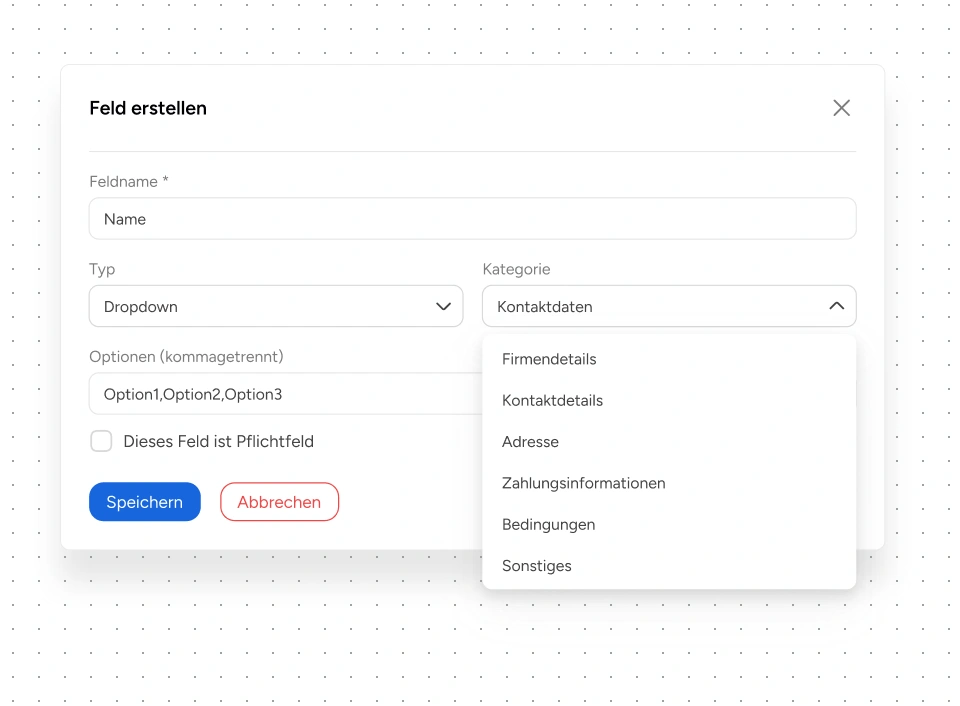 Sorge für klare Strukturen, auch wenn dein Unternehmen wächst. Benutzerdefinierte Felder helfen dir, Informationen einheitlich zu erfassen und übersichtlich darzustellen. Änderungen lassen sich jederzeit vornehmen, damit dein System mit neuen Anforderungen Schritt hält.