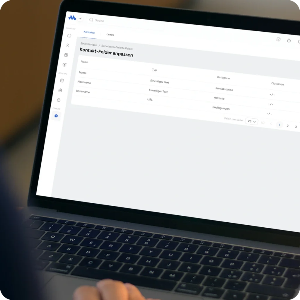 Erweitere Mesh App um genau die Informationen, die für dein Unternehmen relevant sind. Mit benutzerdefinierten Feldern ergänzt du Kontakte, Leads und Projekte um eigene Daten. Feldtypen, Kategorien und Pflichtangaben lassen sich individuell festlegen und jederzeit anpassen.