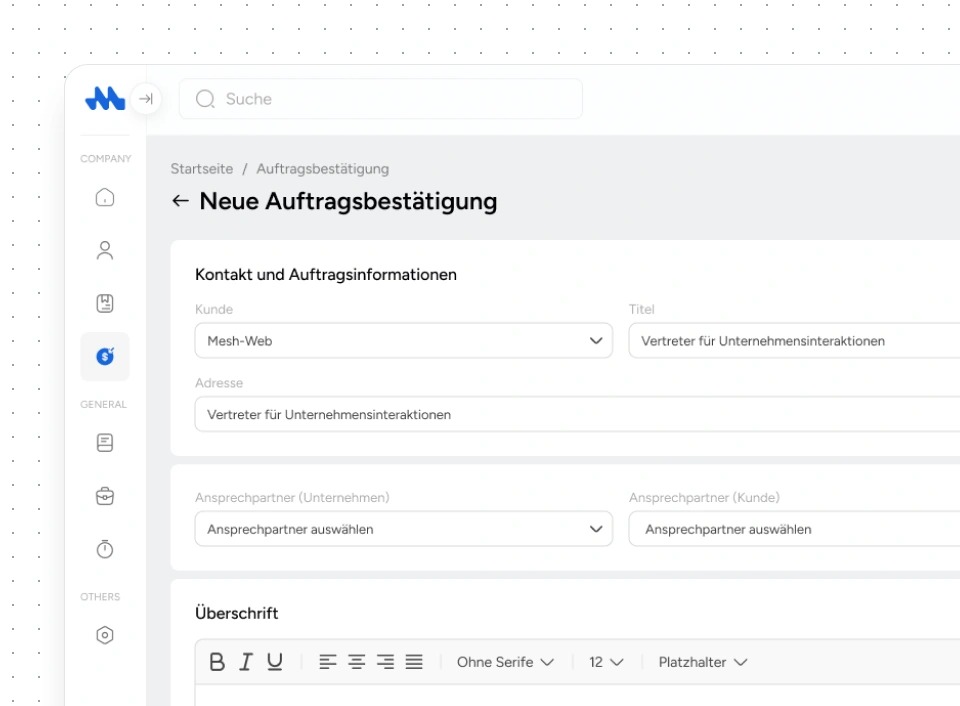 Nachdem ein Angebot akzeptiert wurde, kann man über die Mesh App direkt eine Auftragsbestätigung erstellen und versenden. So wird jede Zusage sauber festgehalten und der Auftrag eindeutig dokumentiert.