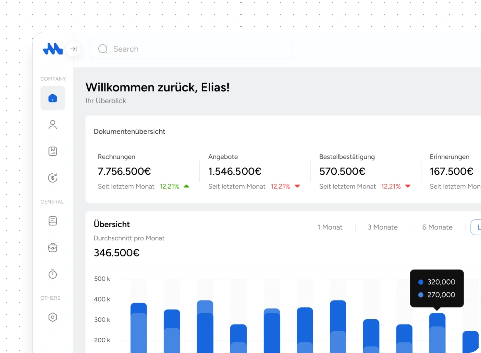 Alle Rechnungen und Dokumente an einem Ort erstellen, organisieren und jederzeit übersichtlich abrufen.
